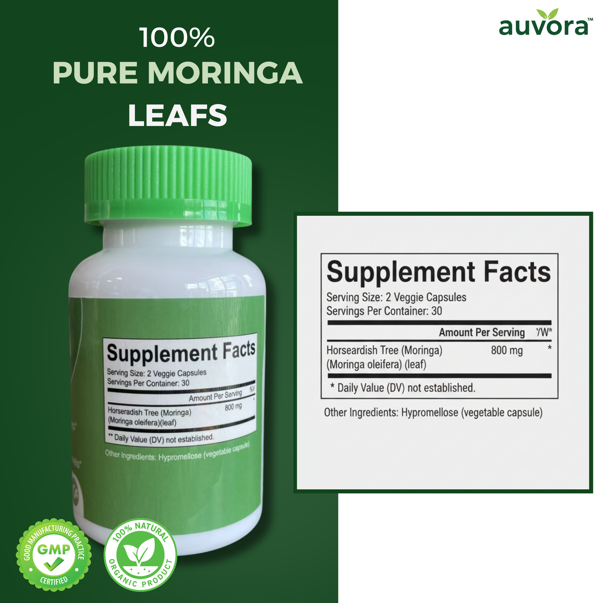 AUVORA contains premium Himalayan moringa leaf extract with over 36 bioactive compounds that work together: